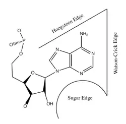The repeated negative charges of the DNA backbone electrostatically repel each other, preventing interactions both within and between DNA strands. This repulsion promotes specific interactions along the Watson–Crick 'edge' of the nucleobases, promoting Watson–Crick base pairing specificity—A pairs with T and C pairs with G.[2]