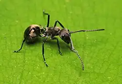 - ^ Pérez-Lachaud, Gabriela; Lachaud, Jean-Paul (2014-06-18). "Arboreal Ant Colonies as 'Hot-Points' of Cryptic Diversity for Myrmecophiles: The Weaver Ant Camponotus sp. aff. textor and Its Interaction Network with Its Associates". PLOS ONE. 9 (6): e100155. Bibcode:2014PLoSO...9j0155P. doi:10.1371/journal.pone.0100155. ISSN 1932-6203. PMC 4062527. PMID 24941047.