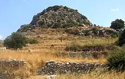 The ruins of Polyrrhenia were discovered at a place called Epano Palaiokastro in the Chania regional unit.[9][10] It is some 7 kilometres (4.3 mi) inland from modern Kissamos. A village of the same name has been established nearby, and the ruins are an archaeological site. The site exhibits the remains of the ancient walls, from 10 to 18 feet (3.0 to 5.5 m) high.[11] Systematic archaeological excavations have been conducted at the site since 1986.