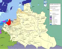 | ¹ Voivodeship of the Polish Crown in the Polish–Lithuanian Commonwealth Voivodeship of the Kingdom of Poland before 1569. ² Small portion of the Vistula Spit around Polski[1] | |||||||||