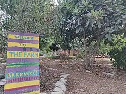 During this time, the farm developed a reputation as an activist space,[3][6] with extensive marijuana smoking, squatting, and other exploits. This, combined with the farm's unofficial status, led to strained relations with the college's administration.[7] In 2002, students constructed an earth dome using Nader Khalili's superadobe designs, but the college demolished it at the start of the fall 2002 semester because of safety and permitting concerns.[3] In April 2003, plans began for a new, institutionally-approved Earth Dome,[3] which was completed in 2005. In May 2006, the farm and the college reached an agreement on rules for the farm, and it has since become institutionalized[4][8] and expanded to include the East Farm.[3][9][10]