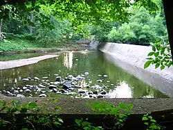 The Pompton Dam is a run-of-the-river spillway constructed as part of the Morris Canal system in the Pompton Plains section of Pequannock, New Jersey, United States in the 1920s to increase land value and provide water retention by creating a backwater on the Pompton River. The structure is listed as part of the Morris Canal on the New Jersey Register of Historic Places as well as the National Register of Historic Places.[1]