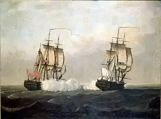 ![]() Pitt (left) engaging Saint Louis on 29 September 1758