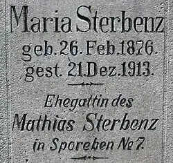The Slovenian name Ponikve is a plural form derived from the word ponikva 'influent stream' or 'sinkhole' (into which such a stream disappears). In its plural form it refers to a gently rolling landscape consisting of the basins of an influent stream. Like other villages named Ponikve and similar names (e.g., Ponikva), it refers to a local landscape element.[4] The German name Sporeben was attested as Payrs-Eben 'Bavarian plain' in 1574.[5][6] This developed via dialect ins Poar Eben 'in the Bavarian plain' into the name Sporeben and refers to a Bavarian ethnic presence among neighboring non-Bavarian settlers.[7]