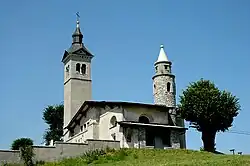 The parish church in the settlement stand on Križ Hill and is dedicated to the Visitation and belongs to the Koper Diocese. Three churches are known to have stood at this site.[6] The original small Gothic church at this site is believed to date from the 1480s based on a stone plaque on the south side of the church bearing the inscription "maister Andre von Lach 148_"[6] (the last digit is missing), referring to the prominent builder Andrej of Loka (a.k.a. Andreas von Lack).
