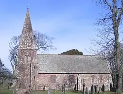 The church is located between the Village of Ponsonby and Calder Bridge[9] and is a Grade 2 listed building.[10] The church has many links to the Stanley Family who were part of the village of Ponsonby and lived in the Calderbridge during the 14th Century and the church has a number of different memorials to the family. The church can be accessed by passing the dry moat, the moat is there due to the time the Church was built. From the Church you can see Sellafield (West) and the Lakeland Fells (North-East)[11]
