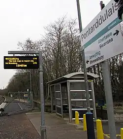 The station has one remaining active platform, which has had a section raised in 2015 to assist passengers boarding or alighting. This was funded by the Welsh Government.[4][5]