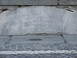 In 1704, it was demolished during the French siege of Ivrea to better defend the town. In 1716, Victor Amadeus II ordered its reconstruction. The bridge was later widened in 1830 by Charles Felix to improve traffic inflow and outflow from Ivrea. Nonetheless, in 1860 an additional bridge, the Ponte Nuovo, had to be built next to it to provide for additional capacity.[2]