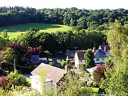 Pontrilas (English: Bridge over Three Rivers) is a village in south Herefordshire, England, half a mile from the border with Wales. It is in the parish of Kentchurch and lies midway between Hereford and Abergavenny. In 2011 the main village contained 66 residential dwellings,[1] as well as Pontrilas Business Park.[2]