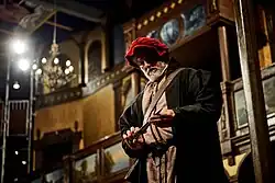 The Nottingham's Company began rehearsals on 4 January 2019, opening Measure For Measure on 14 February 2019 and Hamlet on 15 February 2019. Measure For Measure (directed by Miles Gregory) featured Will Alexander as the Duke, Rebecca Rogers as Isabella and Hugh Sexton as Angelo, and was presented in 17th century Viennese dress with boisterous musical numbers and the Duke disguised as a blind friar with a comic German accent in the prison scenes. Hamlet (directed by David Lawrence) starred Adrian Hooke in the title role and was presented in Jacobean dress and investigating how the original staging might have worked, with use of a 'fast trap' to enable to Ghost to appear and disappear rapidly.