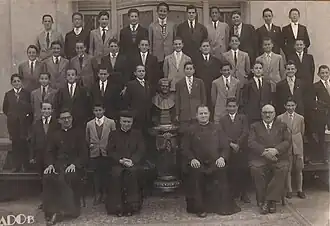 While on his way to celebrate the Spring Day, Bergoglio passed by a church to go to confession and was inspired by a priest.[37] He then studied at the archdiocesan seminary, Inmaculada Concepción Seminary, in Villa Devoto, Buenos Aires, and, after three years, entered the Society of Jesus as a novice on 11 March 1958.[38] Bergoglio said that, as a young seminarian, he had a crush on a girl and briefly doubted his religious career.[39] As a Jesuit novice, he studied the humanities in Santiago, Chile.[40]