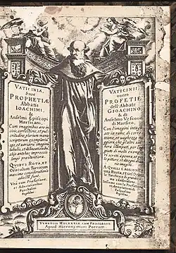 A series of manuscript prophecies concerning the Papacy, under the title of Vaticinia de Summis Pontificibus, a Latin text which assembles portraits of popes and prophecies related to them,[1] circulated from the late thirteenth/early fourteenth century, with prophecies concerning popes from Pope Nicholas III onwards.