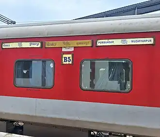 The train shares its rake with 20937/20938 Porbandar–Delhi Sarai Rohilla Superfast Express.
