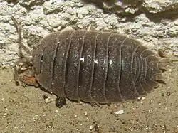 Porcellio dilatatus (Commonly known as the Giant canyon isopod) is a species of woodlouse in the genus Porcellio belonging to the family Porcellionidae. This species is widespread in Europe,[1] and has also been introduced to North America from Western Europe.[2] They are 15 millimetres (0.59 in) long, are brown coloured and striped.[3] As typical for woodlice, they are saprophages, feeding on decaying organic matter, usually from plants.[4]