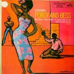 This album is a 1950 recording of selections from George Gershwin's opera Porgy and Bess, sung by the noted opera stars Robert Merrill and Risë Stevens. The album featured no black singers at all, even though the opera was written for a mostly African-American cast (the whites in the opera speak, but do not sing). It was recorded by RCA Victor on September 12 and September 13, 1950. The album was originally released on one twelve-inch 331⁄3 rpm LP with the catalog number LM 1124.