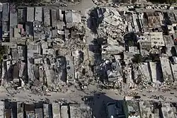 On 12 January 2010, a magnitude 7.0 earthquake struck in the arrondissement, the largest in Haiti in two centuries.[5] The city of Port-au-Prince suffered much damage, and estimates of upwards of 50,000 deaths, with many facilities destroyed.[6] In Pétion-Ville, the earthquake collapsed a hospital in the city.[7] In Carrefour, half of the buildings were destroyed in the worst-affected areas.[8] Roughly half the structures were destroyed in Gressier.[8]