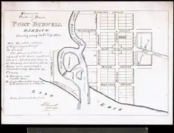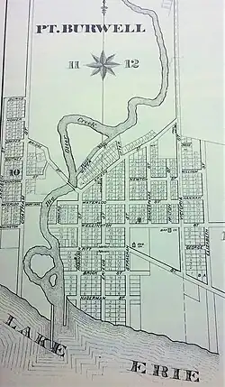 - 1830 – village plot surveyed by Mahlon Burwell on height of land above Lake Erie and east bank of Big Otter Creek; free village lots offered to settlers taking up residence; Customs tax officer appointed for harbour shipping[18]