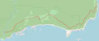 The 14.6 kilometres (9.1 mi) long main line ran from Port Craig in southerly direction, parallelly to the coast, to the Wairaurāhiri River[1] In addition, there were 9.8 kilometres (6.1 mi) of spur lines.[2] The main line was surveyed with at maximum grade of 33 ‰ (1 in 29.5) and deep cuts and high trestle bridges much more elaborately than similar tramways.[3]