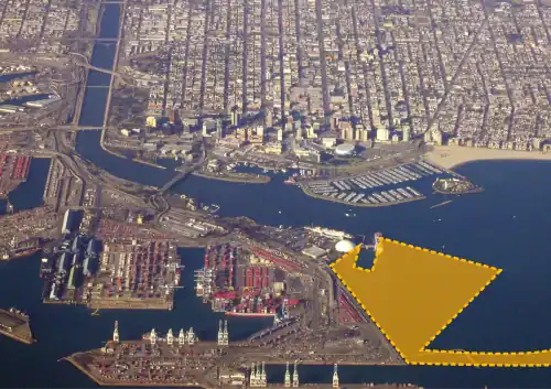 The planned Port Disney final build-out included development on both sides of Queensway Bay, at the mouth of the Los Angeles River. The northern side of Queensway Bay (adjacent to Long Beach's downtown) was called the "City-side", and the southern side (adjacent to the existing freight Port of Long Beach) was called the "Port-side".[5]