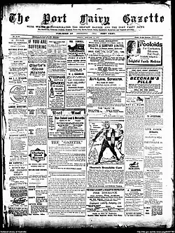 During its publication history, the title of the newspaper alternated between the Port Fairy Gazette and the Gazette.[2] It also absorbed a number of smaller newspapers including the Port Fairy Times & Macarthur news and the Port Fairy News.[1][2]