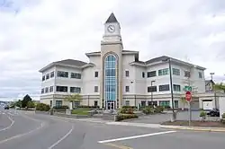 A new city hall was opened in May 1999, replacing a seismically vulnerable building constructed in 1947. It was to be a catalyst for new development in the city's downtown.[8]