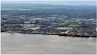 The Port of Beira is a Mozambican port located in the city of Beira, capital of the Sofala Province. It is located in Sofala Bay, which forms a huge complex with the mouth of the Pungoe River, known as the Beira estuary, facing the Mozambique Channel.[2] It is the second largest port in Mozambique, built to replace the port of Old Sofala in the 1890s.[3]