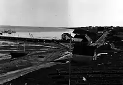 A factory was built in 1939 by the American company Gorton Pew on the south side of the boulevard, opposite Young's wharf. This company would represent another outlet for fish products.[8] It mainly processed frozen cod or sole fillets, and later mainly shrimp and herring.[9]