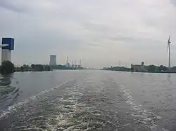 The Port of Ghent is the third busiest seaport in Belgium, located in Ghent, East Flanders in the Flemish Region. The first port of Ghent was situated at the river Scheldt and later on at the Leie. Since the Middle Ages Ghent has sought for a connection to the sea. In the 13th century via the Lieve canal to the Zwin near Damme, in the 16th century via the Sassevaart, in the 17th century via the Ghent–Bruges canal. Since the 19th century, the Ghent–Terneuzen Canal connects the port via the Western Scheldt to the North Sea.[3] The port of Ghent is accessible by ships of the Panamax size, and in February 2015 the construction of a new lock at Terneuzen was announced, which will maintain near-parity with those of the Panama Canal expansion project.[4]