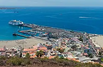 The Port of Los Cristianos is a port of the Atlantic Ocean located in the town of Los Cristianos, in the municipality of Arona on the island of Tenerife (Canary Islands, Spain). It is administered by the Port Authority of Santa Cruz de Tenerife. It is the port with the highest passenger and vehicle traffic in the Canary Islands, in 2007 it had 1,829,579 passengers, and 238,836 vehicles.