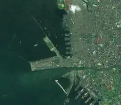 Manila South Harbor (seaport code:MNS),[7] is an 80-hectare (200-acre) port facility located in Port Area, Manila operated by Asian Terminals Incorporated, with 5 piers numbered with odd-numbers 3, 5, 9, 13 and 15. It is accessible through Bonifacio Drive/Radial Road 1 and has a passenger terminal located between Pier 13 and 15 named Eva Macapagal Super Terminal. It was formerly the main hub of 2GO ferry company. In April 2014, a new Liebherr quay crane was installed to increase the efficiency of the harbor.[13]