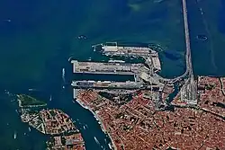 The Port of Venice (Italian: Porto di Venezia) is a port serving Venice, northeastern Italy. It is the eighth-busiest commercial port in Italy and was one of the most important in the Mediterranean concerning the cruise sector, as a major hub for cruise ships. It is one of the major Italian ports and is included in the list of the leading European ports which are located on the strategic nodes of trans-European networks. In 2006, 30,936,931 tonnes passed through the port, of which 14,541,961 was the commercial sector, and it saw 1,453,513 passengers. In 2002, the port handled 262,337 containers.[1]