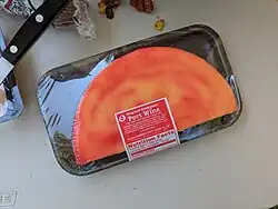 Port wine cheese is an orange- and red-colored cheese or cheese spread that is heavily dosed with alcoholic port wine as it is made.[1] It is typically used as a cheese spread on foods such as crackers.[2] It can be rolled into a cylindrical shape or into a ball, and is sometimes covered in nuts.[3] Port wine cheese is a mass-produced product in the United States.[2]