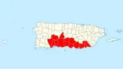 - ^ a b Plan de Uso de Terrenos de Puerto Rico: Perfil Regional - Region Sur. Archived 2012-04-26 at the Wayback Machine Estado Libre Asociado de Puerto Rico. Junta de Planificacion. Oficina del Plan de Uso de Terrenos. Borrador Preliminar. February 2006. Page 15. Retrieved 1 December 2011.