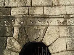 Work on the façade facing Verona commenced in 1535, as evidenced by another inscription that is now unreadable due to abrasion. This inscription bore the name of the architect and was mentioned again by Maffei and Ronzani.[8] The Podestà Cristoforo Morosini and Captain Giacomo Marcello, whose coats of arms are still visible on the façade, reported the completion of the building site around 1540.[15] The year 1540 is also confirmed by an inscription on the central tympanum of the elevation facing the city.[9][13] In the same year, when the elevation toward the city was nearly completed, the official opening of the gate took place, which a report dated 26 July that year sets at 1 August.[8][16]