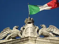 The Lion of St. Mark was destroyed by the Jacobins in 1801 and later replaced by a sculpted group with a coat of arms bearing the double-headed imperial eagle in the center, later abraded, and topped by a crown.[19]
