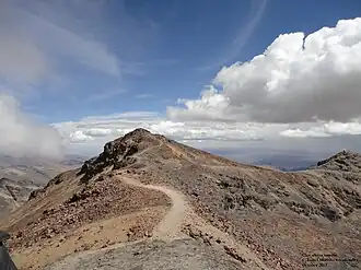 The Andes are the highest mountain range outside of Asia. The range's highest peak, Argentina's Aconcagua, rises to an elevation of about 6,961 m (22,838 ft) above sea level. The peak of Chimborazo in the Ecuadorian Andes is farther from the Earth's center than any other location on the Earth's surface, due to the equatorial bulge resulting from the Earth's rotation. The world's highest volcanoes are in the Andes, including Ojos del Salado on the Chile–Argentina border, which rises to 6,893 m (22,615 ft). (Full article...)
