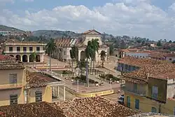 The Plaza Mayor in Trinidad, Cuba, is the historic centre of the town, declared a UNESCO World Heritage Site in 1988. The buildings surrounding the central square date from the 18th and 19th centuries when trade in sugar from the nearby Valle de los Ingenios and slaves, brought great riches to the area. Many of the buildings surrounding the central square belonged to the wealthy landowners of the city. When the trade in sugar diminished and the slave trade ended in the mid-19th century, Trinidad became a backwater and because little building work was carried until the 1950s many of the historic buildings and streets were preserved, especially the grand constructions in the immediate vicinity of the Plaza Mayor. Today, most of the houses surrounding the square are home to museums.
