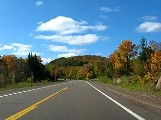 Hairpin curve on U.S. Route 44 and New York State Route 55 near Gardiner, New York.