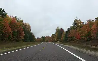 M-28 in Schoolcraft County, Michigan, a 27-mile (43 km) segment of "straight as an arrow" highway.