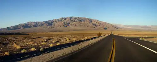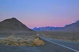 U.S. Route 50 in the desert of Nevada. This section is nicknamed the "Loneliest Road in America".