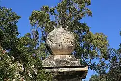 Just outside the gate there are two pillars bearing stone balls fashioned as large water carriers with handles and a spout. These are known as Bomblu in Maltese and gave the gate its present name Porte des Bombes.[16]