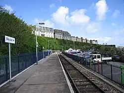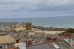 The modern seaside resort developed as a result of the arrival of the St Ives Bay branch line from St Erth, part of the Great Western Railway in 1877.[20][21] With it came a new generation of Victorian seaside holidaymakers. Much of the town was built during the latter part of the 19th century. The railway, which winds along the cliffs and bays, survived the Beeching cuts and has become a tourist attraction itself.[22]