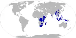 The 17 described species are found in Africa, Australia, China, Madagascar, Malaysia, Myanmar, Nepal, India, the Philippines, Sri Lanka, Taiwan, and Vietnam.[1]