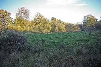 The earthworks at Portingbury consist of 3 features; a hill and mound connected by a zig-zag causeway formed by 2 almost parallel ditches to another rectangular enclosure measuring 30 by 21 metres (98 ft × 69 ft) surrounded by a large ditch with a suggested bank up to 11 metres (36 feet) wide. They are located in the northwest of Hatfield Forest in Beggarshall coppice. Archaeologists suggested that the initial, V-shaped, ditch surrounding the mound would have been approximately 2 metres in depth suggesting it once had earth ramparts supported by timber. Smaller banks have been noted to cross Shermore Brook to Spittlemore coppice.[4] However the earthworks are too small to be a hillfort and are not in a defensible position.[5] Moreover, the ditches are of a size more commonly found in medieval moats. The current earthworks may be the result of overbuilding over time.[6]