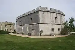 Following the final defeat of Napoleon, the castle was disarmed and leased to John Manning, a Portland churchman, who converted it from a fortress into a private house.[25] John's son, Charles Manning, took over the house in 1834 and continued to develop it.[26] Among the Mannings' work was the conversion of an older house alongside the main castle, which had once housed the master gunner, into a grander property, known today as the Captain's House.[27] In the late 1840s, the Portland Roads were converted into an artificial harbour through the construction of a breakwater, and new forts were built on the Verne heights and the sea front to protect it, although the structure of the old castle itself was left untouched by the growing complex of forts.[28] Charles died in 1869 and, amid ongoing invasion fears, the War Office took over the castle again for use as accommodation for commissioned officers, including as a house for the adjutant of the Verne Citadel.[29]