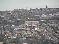 The old Portobello High School building on Duddingston Road, Edinburgh taken from Arthur's Seat.