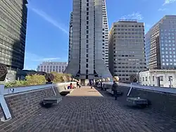 In 2014, the San Francisco Recreation & Parks Department conducted a feasibility study for redesigning and upgrading Portsmouth Square.[4][17][18] Designs were drawn up, and in 2021 it was publicly announced that the bridge would be removed as part of the redesign.[5][19] It was estimated that it would cost $2.1 million project to dismantle the bridge.[10][5] The permit with the city states that it would be the Hilton Hotel's responsibility to remove the bridge.[20] David Gonzalez, president of the hotel's owner Portsmouth Square Inc., said that the hotel did not want to pay to demolish the bridge.[12]