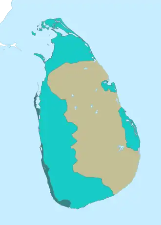 Direct Portuguese rule began after the death of Dharmapala of Kotte who bequeathed the Kingdom of Kotte to the Portuguese monarch.[5] By 1600 the Portuguese had consolidated the main centers of rebellion, the Kelani and Kalu ganga basins, leaving the border regions to Sinhalese resistance.[6]