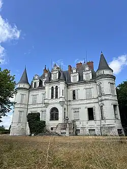 The castle was built between 1860 and 1865, based on a design by Alfred Dauvergne (1824-1885).[1] This architect was very active in the Loire region, particularly in Châteauroux and its surroundings, where he designed numerous churches, vicarages, town halls, schools and castles. For the Poseidon castle, he drew inspiration from the castle of Azay-le-Rideau. The new construction followed the demolition of a previous castle, of which only a keep remains. The demolition materials were used for the foundations and the base of the new castle.[2]