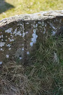 The capstone is the lesser half of a granite slab brought to Denmark from Northern Scandinavia by ice age glaciers' movements. The underside is remarkably flat, and possibly split from another half, by the dolmen builders. The other half is a 19-tonne (21-ton) slab 2 km (1.2 mi) to the northwest, placed as a capstone on another dolmen, Agri Dyssen.[1] How these slabs were transported and erected by Stone Age people is not known.